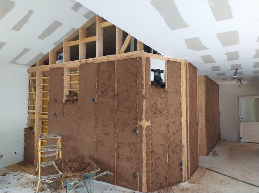 En plus d’avoir un impact environnemental particulièrement faible, la terre a de nombreuses propriétés vertueuses pour l’habitat. Selon la technique utilisée (Torchis, adobe, enduit…) la terre joue un rôle majeur dans la régulation hygrothermique grâce à son pouvoir d’absorption de la vapeur d’eau et sa grande inertie.